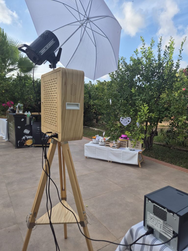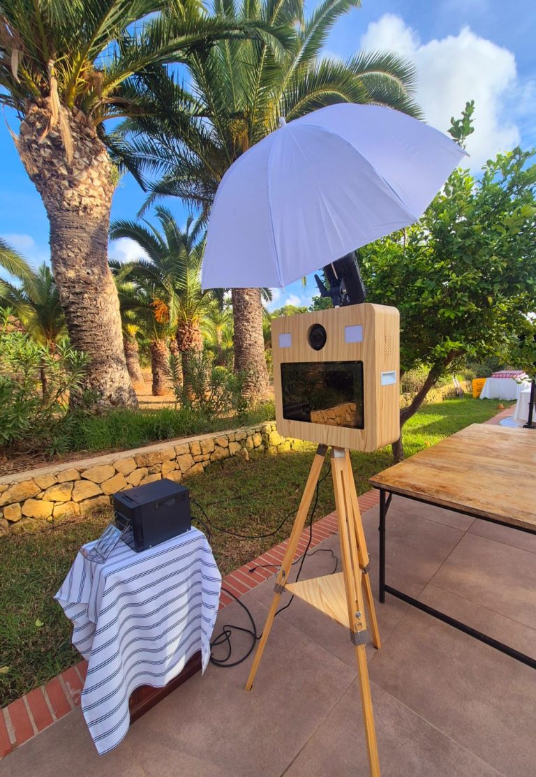 Cabina, accesorios divertidos, impresión de fotos al instante y atención durante el evento.